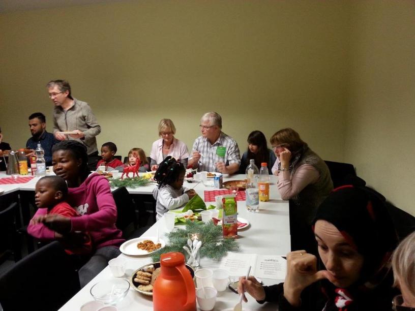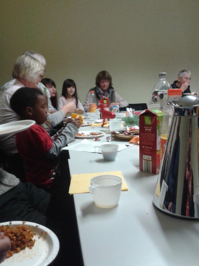 Auf der Weihnachtsfeier des Integrationsforums Münster hatten wir einen ganzen bunten Strauß dieser Erlebnisse. Gemeinsam mit unseren neuen Freundinnen und Freunden, die aus allen Teilen der Welt zu uns gekommen sind, haben wir Weihnachten gefeiert. Sie brachten Essen mit. Sie sangen mit uns unsere traditionellen Weihnachtslieder, trugen aber auch ihre Weihnachtslieder vor. Lachen überall. Vergnügte Kinder wechselten fröhlich glucksend von einem Arm zum anderen und wurden geherzt. Dazu hatte es nur eine Einladung gebraucht.