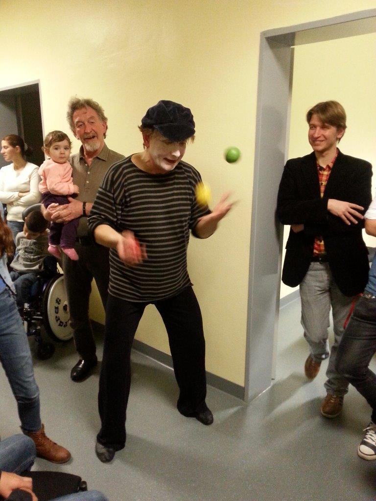 Und als dann noch der Pantomime Peter Paul, auftrat, den wir als Verein eingeladen hatten, war vor allem das Kinderglück grenzenlos. So tun als ob; was für ein Spaß! Bälle die es nicht gab und dann doch, wurden geworfen – und gefangen. Seile, die es nicht gab und dann doch, wurden gezogen – und losgelassen. Gewichte, die es nicht gab und dann doch, wurden gestemmt und lernten das Fliegen. Was wäre wenn… Fantasie wurde Wirklichkeit.
