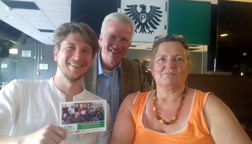 So trifft man spannende Leute! Jörg Rostek (li.) und Brigitte von Schoenebeck (re.) haben in der VIP-Lounge von Preussen Münster am Speeddating für Ehrenamtliche teilgenommen und das Integrationsforum vorgestellt. Danke an die Stiftung Bürger für Münster und ihren Vorstandsvorsitzenden Hans-Peter Kosmider (mi.) für Einladung und Gelegenheit.